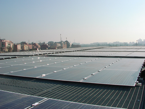 1 MW photovoltaic array on the roof of a water treatment plant in Cardedeu