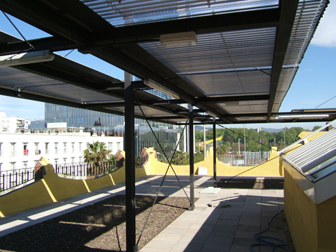 This building, which formerly housed the Barcelona offices of Catalana de Gas and was donated to the Barcelona Municipal Council, was the object of a reform and transformation in both the formal/structural sense as well as in terms of energy, in accordance with sustainability criteria. It currently has a permanent exhibition on the ground floor, and offices of various associations on the first floor. In addition to an evacuated tube solar thermal collector, a biomass boiler and an absorption pump for heating and cooling, the building has two photovoltaic installations, one autonomous and one grid-connected. Both installations serve demonstrative purposes as well as producing electricity for the building itself. The installations are accessible to members of the public on guided visits.