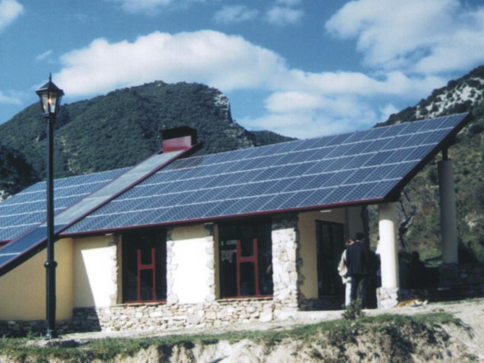 This PV rural electrification project in the population centre of Agüero in Huesca, Aragón, stands out among the examples of MSG projects carried out in Spain. A 10kVA PV array was integrated into a building designed specifically for this energy-related purpose, which also serves as a social centre for the village. Furthermore, 5 m² of solar thermal collectors were also installed (providing hot water for a public shower and a bar) and an auxiliary 10 kVA diesel generator was also included. The electricity is distributed to the village’s 15 houses and is also used for public lighting. The municipality and the government of Aragón participated in the promotion of the project.